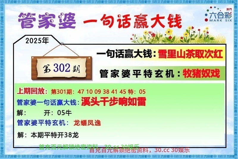 | 302期:大小中特🥝【小数】🍑开:猴22准 | |||